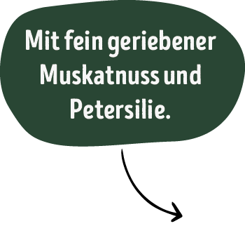 Unser heimischer Eintopf mit fein geriebener Muskatnuss und Petersilie ist schnell erhitzt und schmeckt dabei wie selbstgemacht.